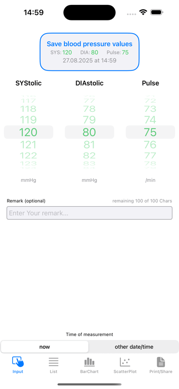 - Storage of blood pressure data only locally on your iPhone/iPad!