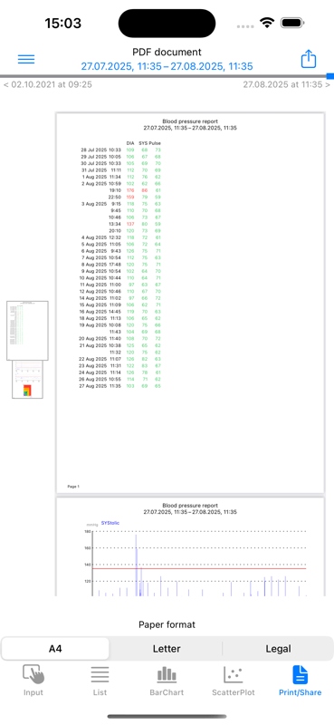 - A PDF file with a table of blood pressure data and graph can also be generated for these time periods. This PDF file can be printed or emailed.